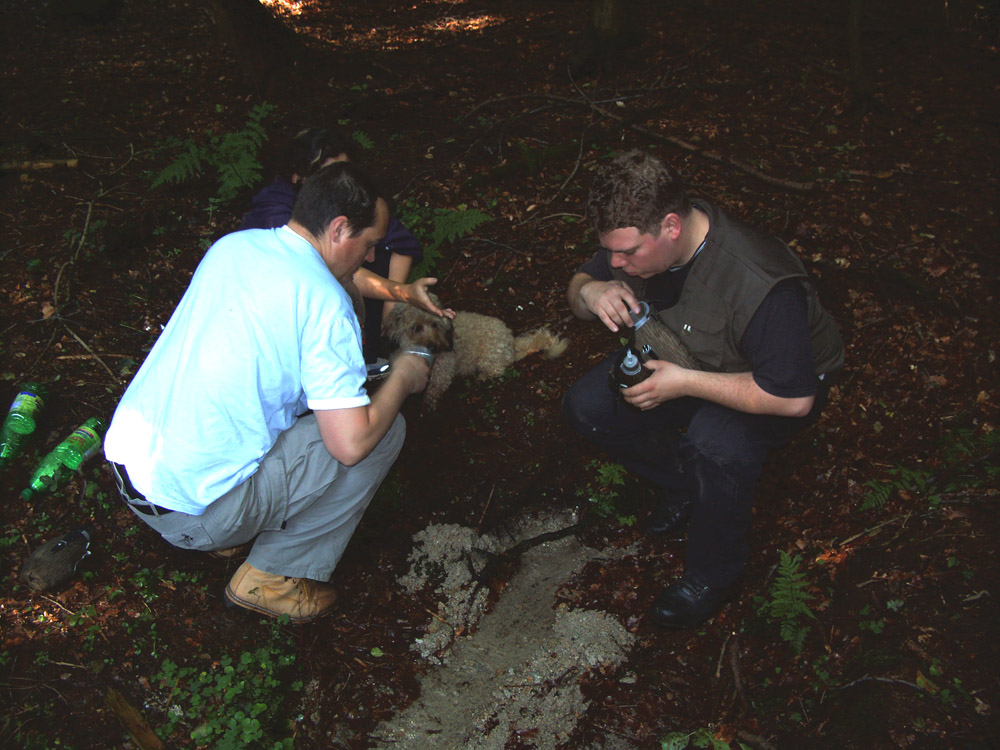 Es fiel wohl keinem schwer, seinen rasselnden Wecker für die morgentlichen Weckgeräusche im Wald aufzugeben. Die Vögel und die Eichhörnchen sorgten schon dafür, daß keiner zum Langschläfer wurde. So ein Morgengrauen im Wald ist schon etwas wundervolles, kaum in Bild und Ton festzuhalten. |