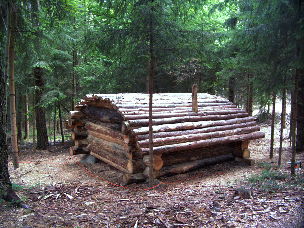 Aller Anfang ist schwer ... Grundgerüst für ein 5m x 5m großes Blockhaus |