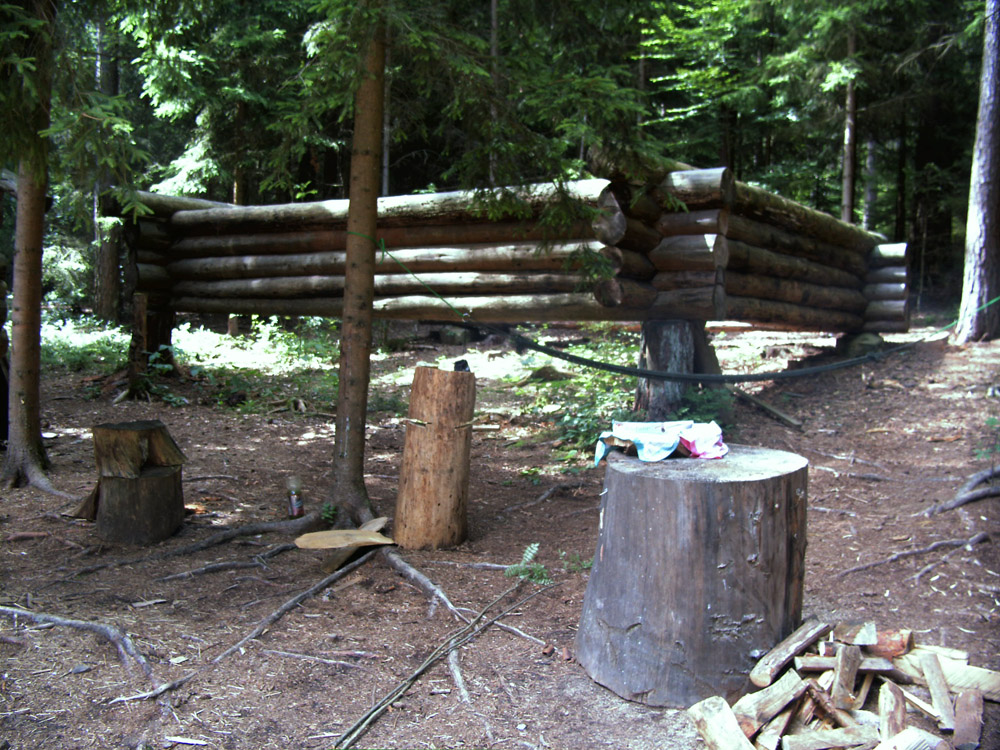 Wir nutzten nicht nur die Möglichkeit, erstmalig in einer Blockhütte statt in einem Zelt zu nächtigen, sondern konnte auch verschiedene hölzerne Exemplare begutachten. Dabei konnten wir uns so manche gute Idee abschauen. |