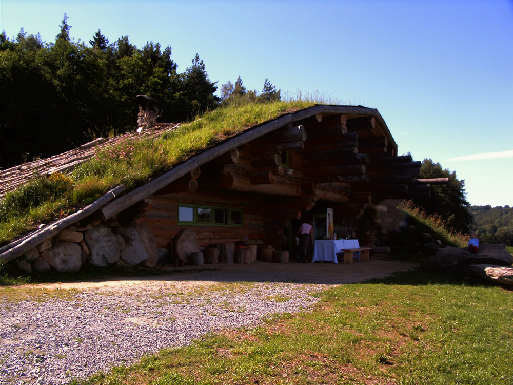Am Waldrand an einem Hang steht das 2004 erbaute Erdhaus von Wolfgang Tremmel, genutzt für Seminare und Veranstaltungen. Mit einem 17 m langen Querfirst bietet es schon einen überragenden Anblick. An dieser Stelle nochmals vielen Dank an Wolfgang für die einladung und seine Gastfreundschaft. |