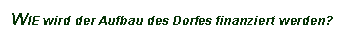 Die Fixkosten werden sehr gering ausfallen, da sich das Ökodorf weitgehend autark versorgen wird. Es werden auch keine nennenswerten Gehälter oder Löhne anfallen. Es hat sich gezeigt, daß es viele Interessenten gibt, die sich gegen "Kost und Logis" dauerhaft oder für einen bestimmten Zeitraum dem Dorf anschließen und es unterstützen wollen. |